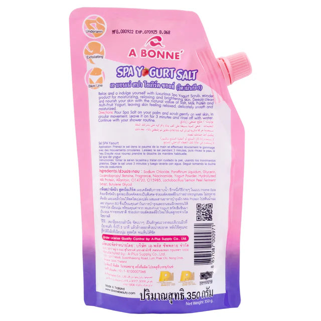 This combination supports leaving your skin delicately smooth and well-conditioned. The unique blend found in A Bonne Yogurt Salt 350g size ensures effective exfoliation and hydration for a spa-quality experience at home.