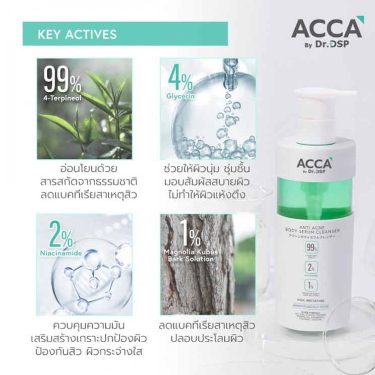 Proudly made in Thailand, the ACCA anti acne body cleanser Thailand offers visible results with consistent use. Enjoy the benefits of a body serum cleanser for oily/acne skin in one convenient, easy-to-use bottle.