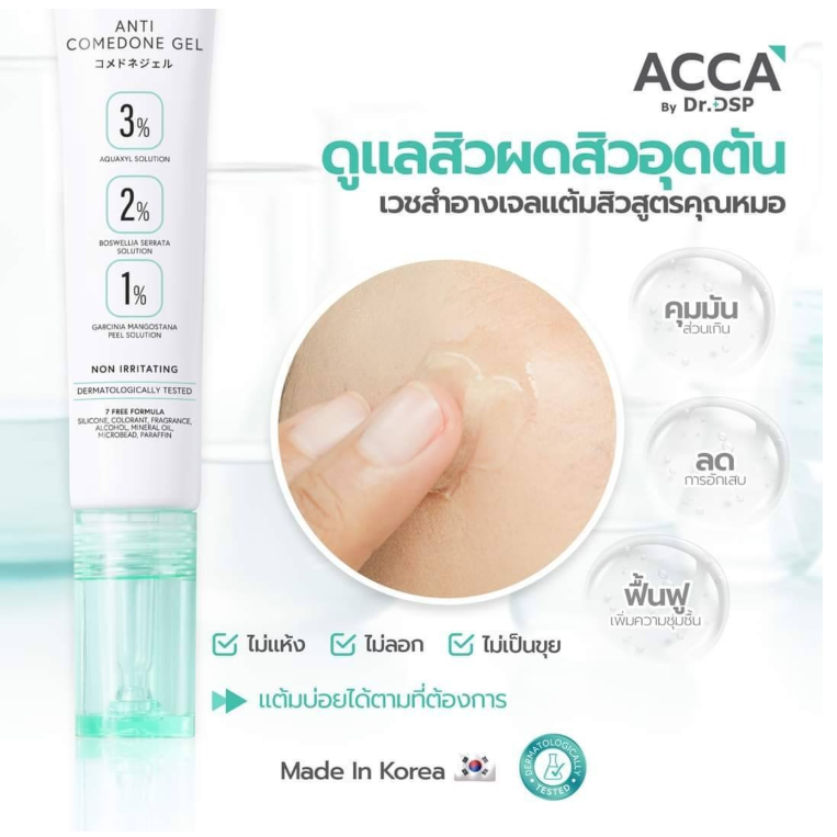 This Acca by Dr.DSP formula is a highly effective anti comedone gel designed to rejuvenate and strengthen weakened skin while preventing acne breakouts. As a gentle yet powerful anti acne gel, it combines skin-loving ingredients like 2% Boswellia Serrata to calm acne-prone skin, Zinc PCA to act as an oil control gel that reduces excess sebum, and 3% Aquaxyl to enhance the skin’s natural barrier.