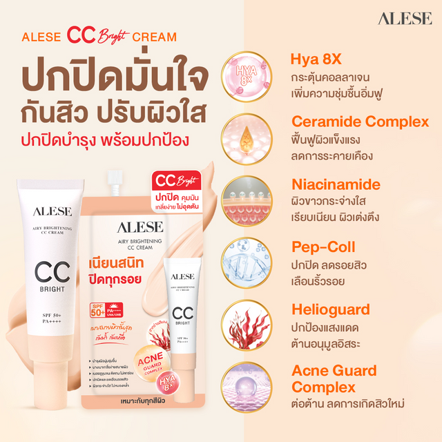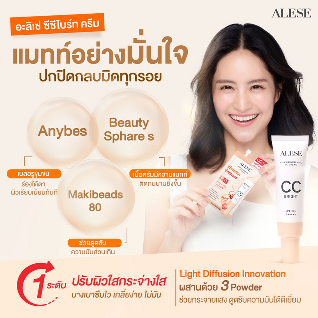 Made with carefully selected Alese CC cream ingredients, this product delivers multiple Alese CC cream benefits, including hydration and radiance. Popular in Alese CC cream Thailand, it has become a go-to choice for those wanting flawless coverage and skincare in one. See the Alese Airy CC cream before after photos to witness the remarkable transformation. Ready to glow? Buy Alese Airy Brightening CC Cream today at the best Alese Airy Brightening CC Cream price and experience the magic yourself.