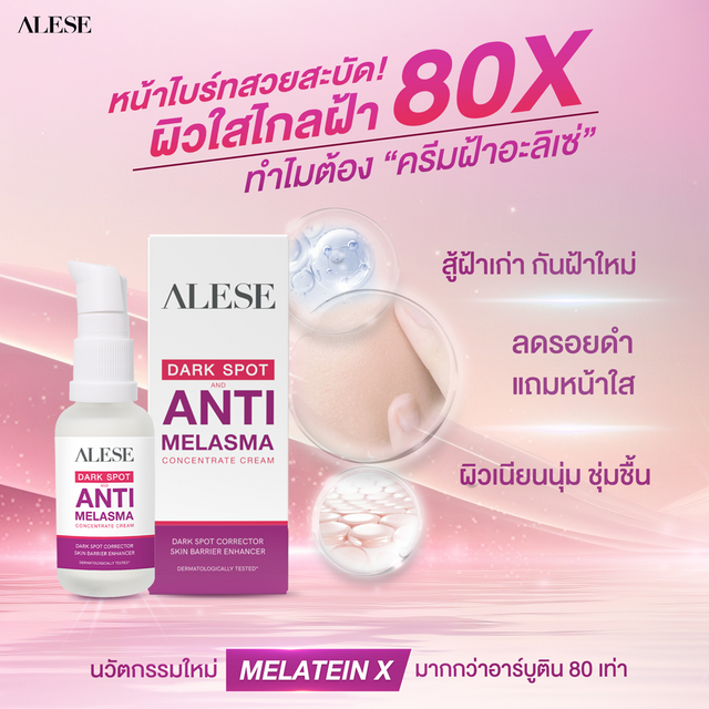 Trusted formulation from Thailand’s leading skincare brand – Alese Dark Spot Anti Melasma Concentrate Cream.