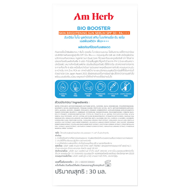 Am Herb - Bio Booster Skin Brightening Sun Serum SPF50 PA++++ 30ml.