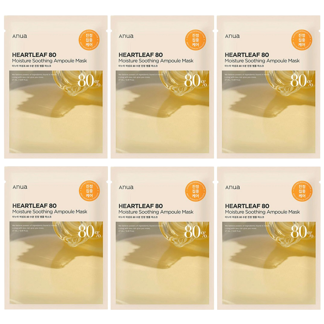 Anua - Heartleaf 80 Moisture Soothing Ampoule Mask 27ml. (Pack of 6)