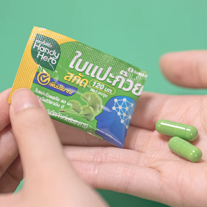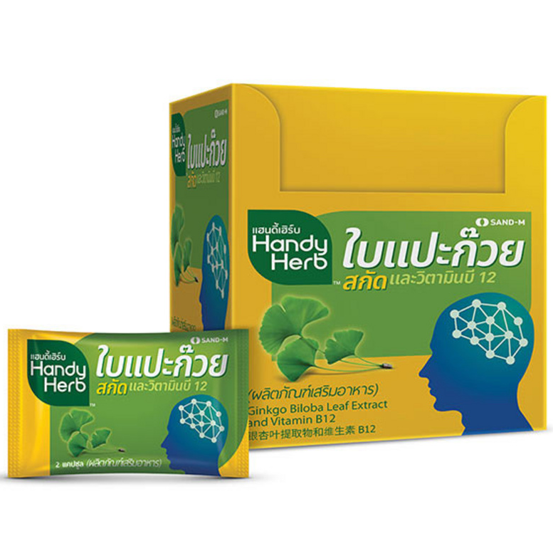 Handy Herb - Dietary Supplement Gingko Leaf Extract 110mg. (Box of 12 sachets, 2 capsules per shachet)