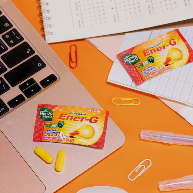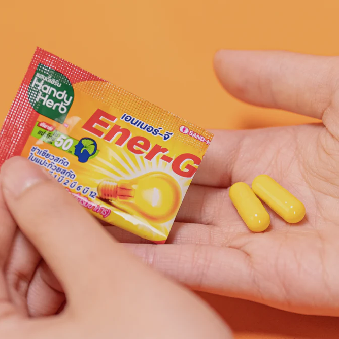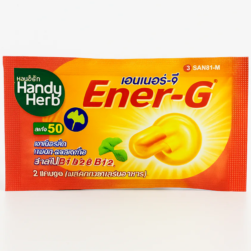 Handy Herb - Ener-G Dietary Supplement 110 mg., Ginko extract, Thai Black Ginger extract, Vitamin C, B1, B2, B6, and B12 (Pack of 3 sachets, 2 capsules per shachet)