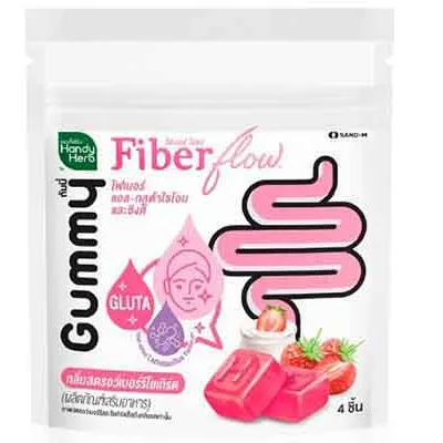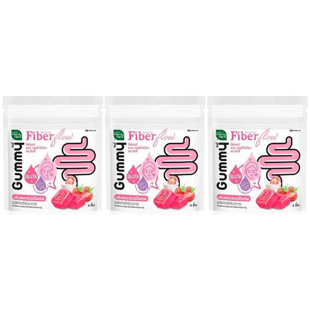 Handy Herb - Fiber Flow Gummy Jelly, Fiber, L-Glutathione, Zinc, Rose and Grape Seed Extracts, Strawberry Yogurt flavor (Pack of 3 sachets, 4 pcs. per sachet)