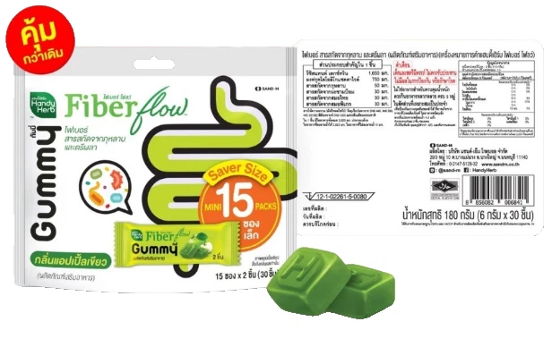 Handy Herb - Fiber Flow Gummy Jelly, Fiber Rose extract and Triphala, Green Apple flavor (30 pieces)
