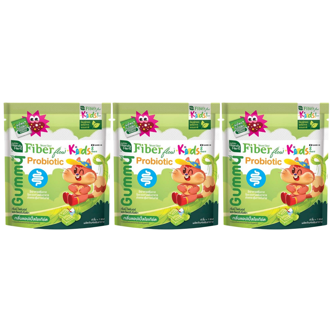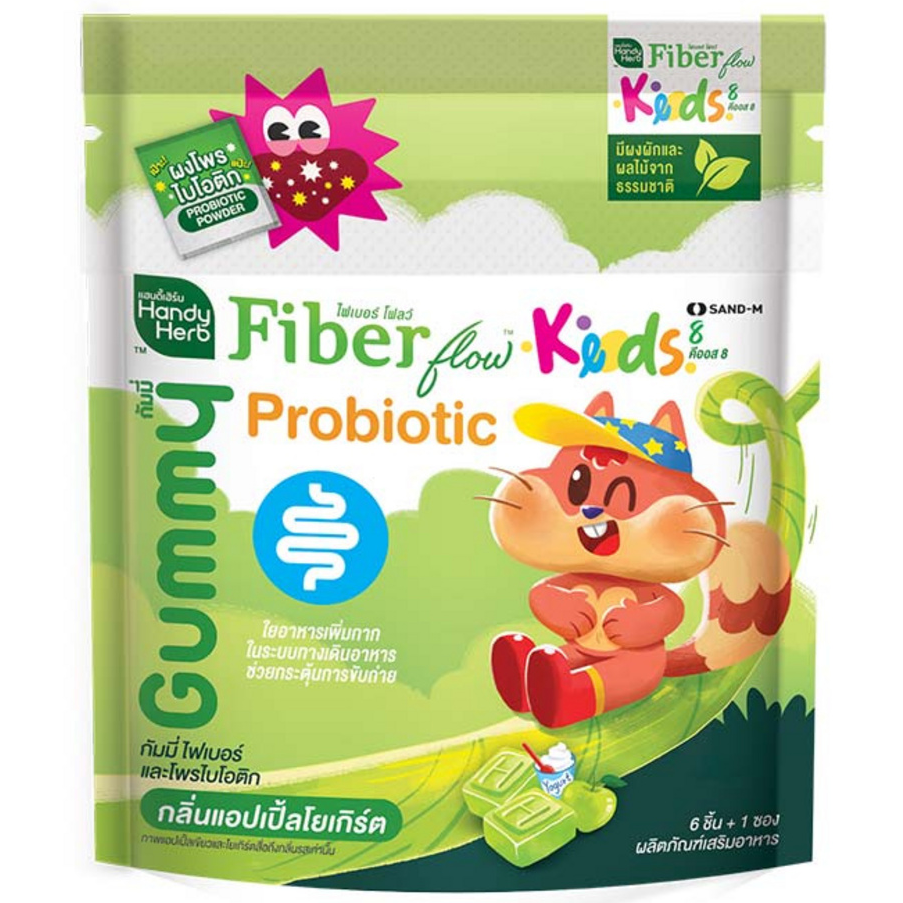 Handy Herb - Fiber Flow Kids Gummy Jelly, Probiotic, Apple Yogurt flavor (Pack of 3 sachets, 6 pcs. per sachet)