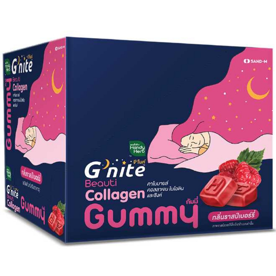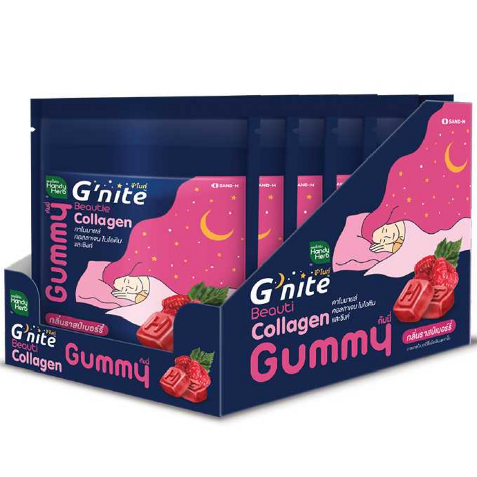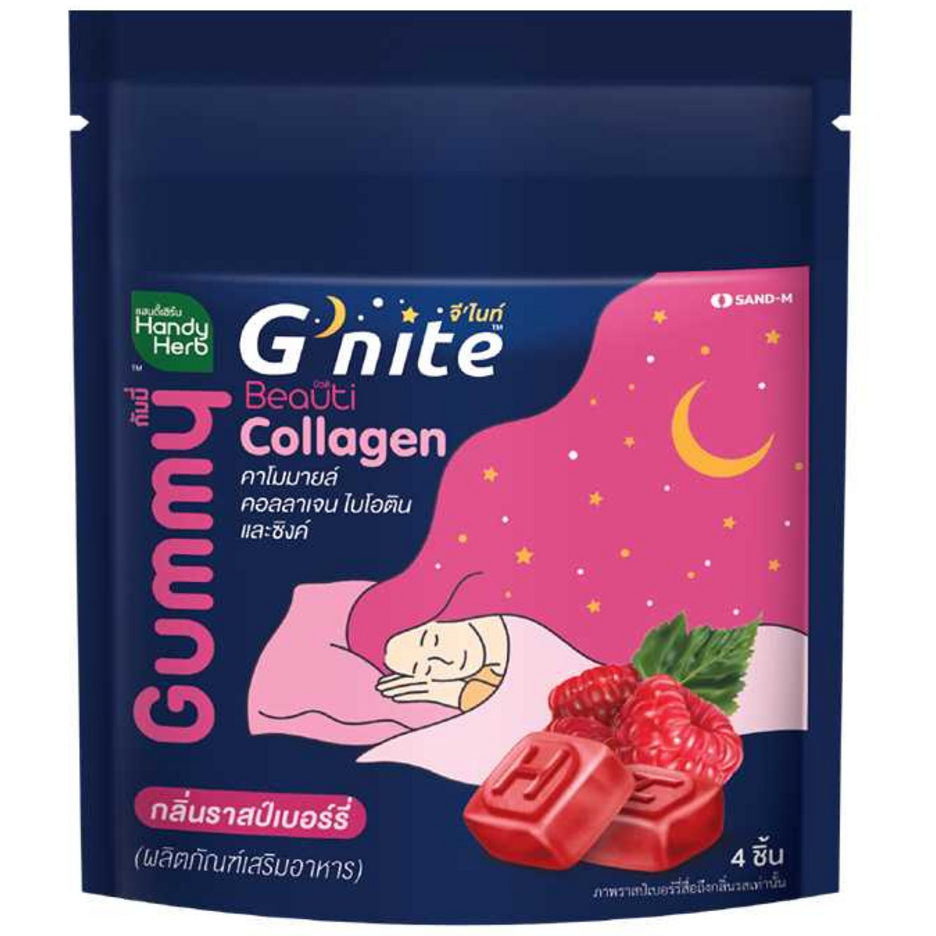 Handy Herb - Gnite Beautie Gummy Jelly, Chamomile Collagen Biotin and Zinc, Sleep Fast, Raspberry flavor (Box of 6 sachets, 4 pcs. per sachet)
