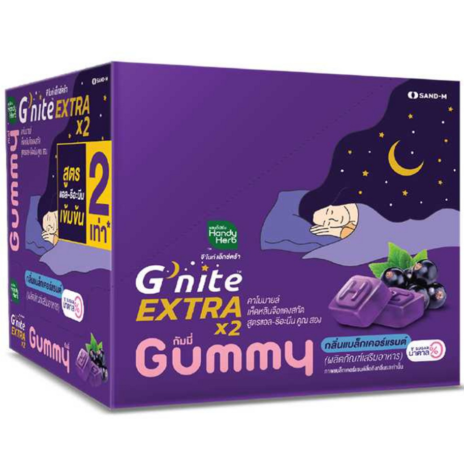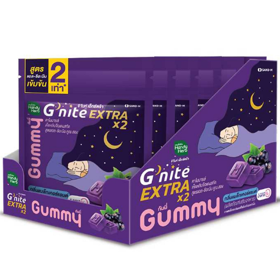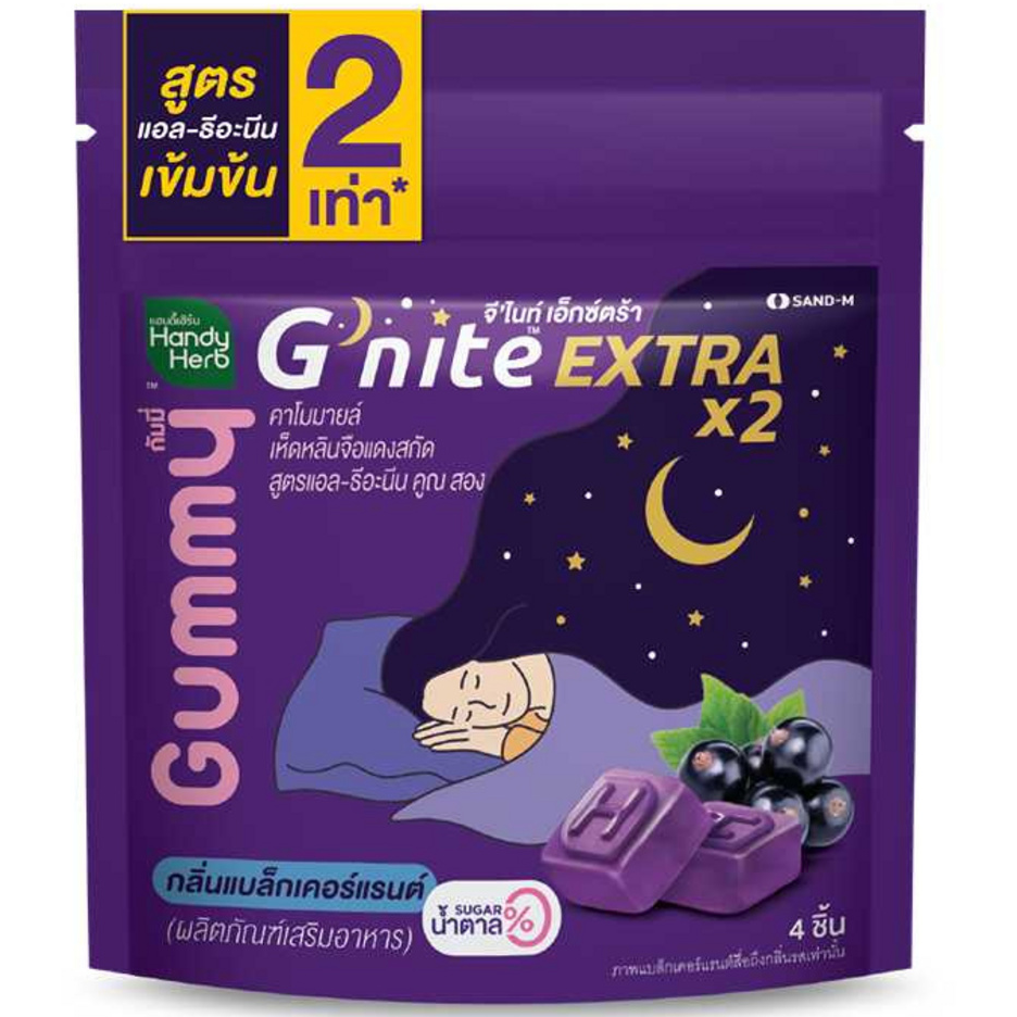 Handy Herb - Gnite Extra X2 Gummy Jelly, Chamomile, Red Reishi Mushroom Extract and L-Theanine X2, Sleep Fast Blackcurrant flavor (Box of 6 sachets, 4 pcs. per sachet)