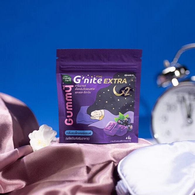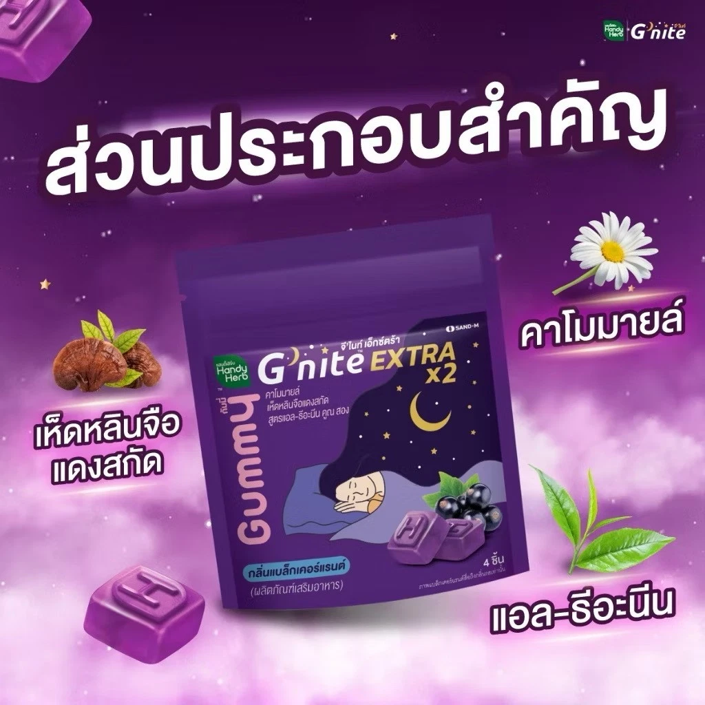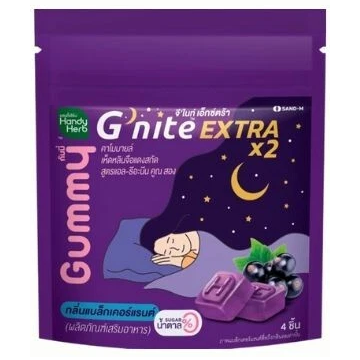Handy Herb - Gnite Extra X2 Gummy Jelly, Chamomile, Red Reishi Mushroom Extract and L-Theanine X2, Sleep Fast Blackcurrant flavor (Pack of 3 sachets, 4 pcs. per sachet)