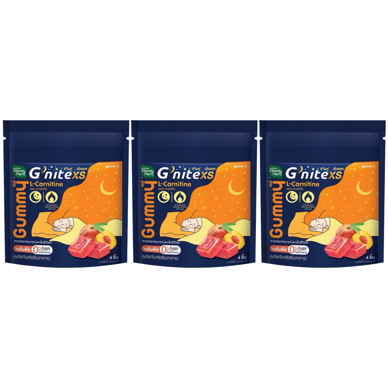 Handy Herb - Gnite XS Gummy Jelly, Chamomile and L-Theanine, Sleep Fast, Peach flavor (Pack of 3 sachets, 4 pcs. per sachet)