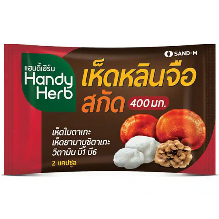 Handy Herb - Ligzhi Mushroom Capsules, Reishi Mushroom Extract 400 mg., Maitake Mushroom 20 mg., Yamabushitake Mushroom 20mg., Vitamin B1 0.5 mg., Vitamin B6 1 mg. (Pack of 3 sachets, 2 capsules per shachet)