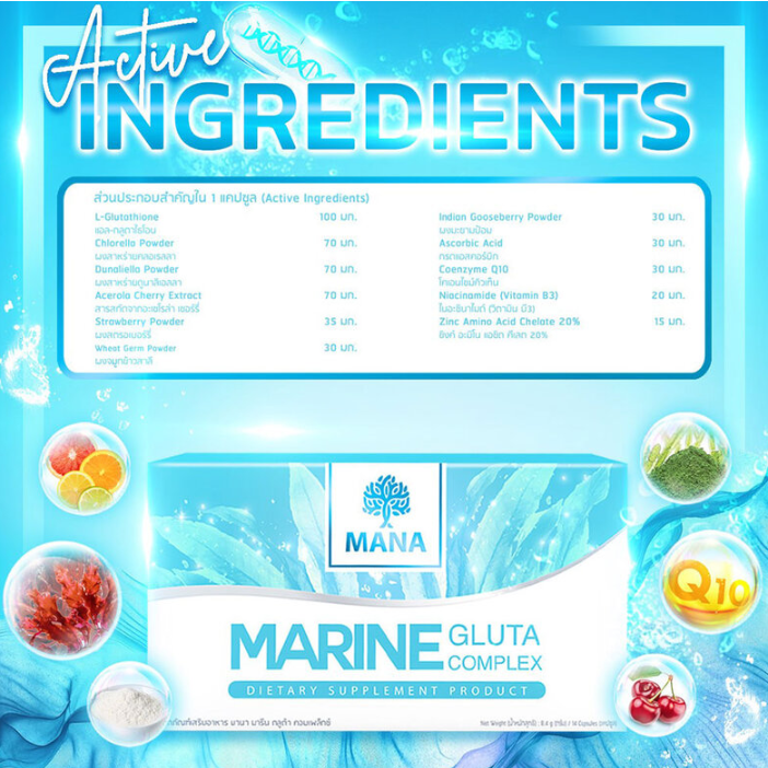 Experience radiant skin from within with MANA Marine Gluta Complex, a premium health and beauty formula designed to support your skin’s natural glow and overall well-being. This powerful blend includes 11 concentrated marine and plant-based ingredients.