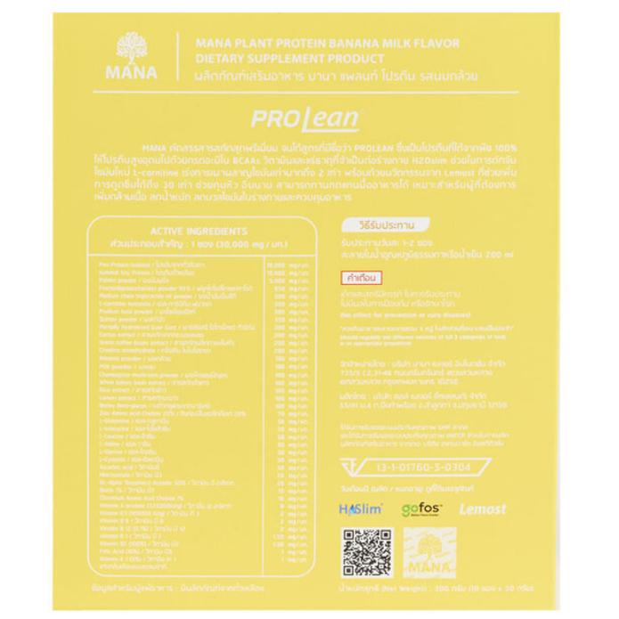 Mana - ProLean Plant Protein Banana Milk Flavor (10 sachets)