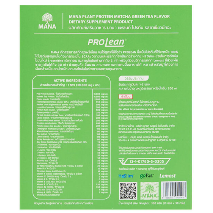Mana - ProLean Plant Protein Matcha Latte Flavor (10 sachets)