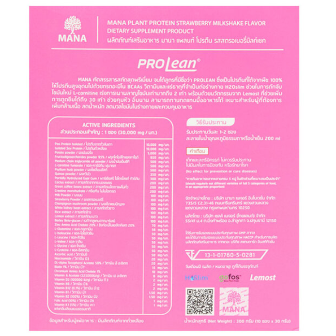 Mana - ProLean Plant Protein Strawberry Milkshake Flavor (10 sachets)