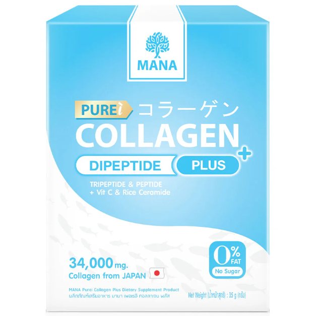 Mana Pure Collagen Plus+ 35g is a high-quality, water-soluble collagen dipeptide supplement designed to enhance skin elasticity and promote overall skin and joint health. This marine collagen supplement is made from deep-sea fish and is 100% odorless and colorless, making it easy to incorporate into your daily routine. Free from starch, fat, and sugar, it is a perfect addition to your wellness plan.