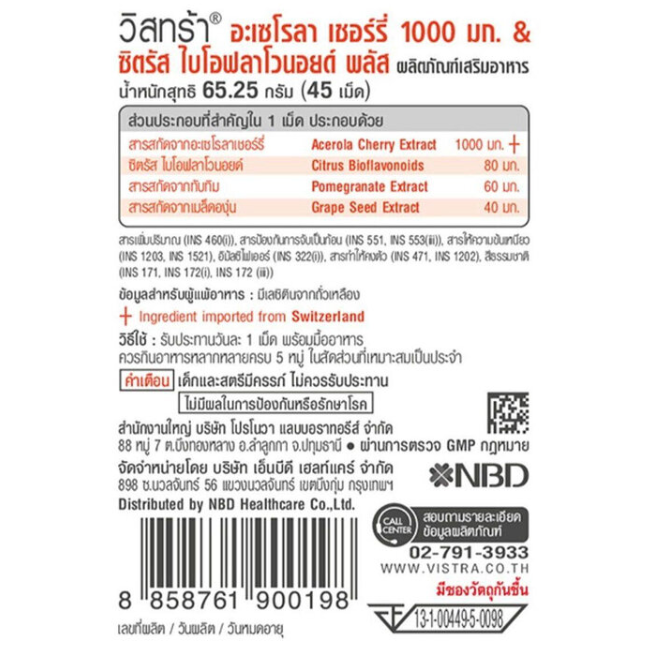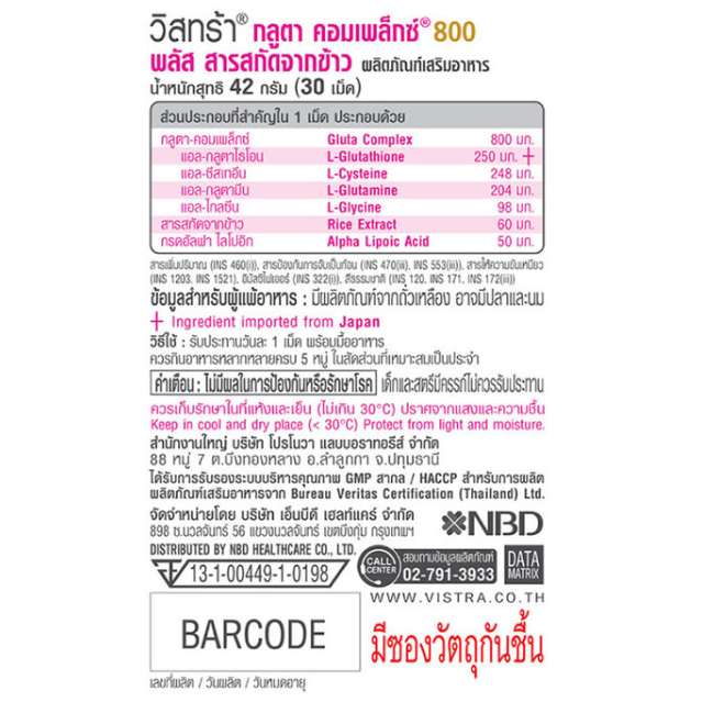 Vistra - Bundle - Skin Beauty Gluta Complex 800 Plus Rice Extract (30 Tablets) + Acerola Cherry 1000mg Plus Citrus Bioflavavonoids (45 Tablets)