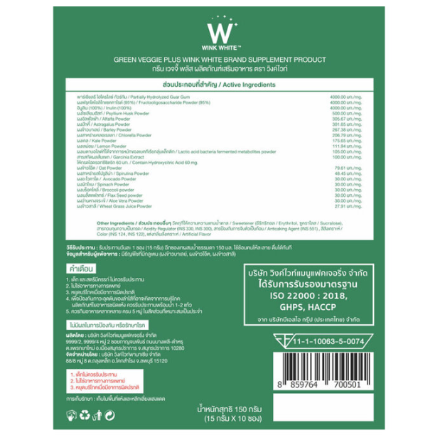 WinkWhite - Fiber Green Veggie Plus 15g. (10 Sachets)