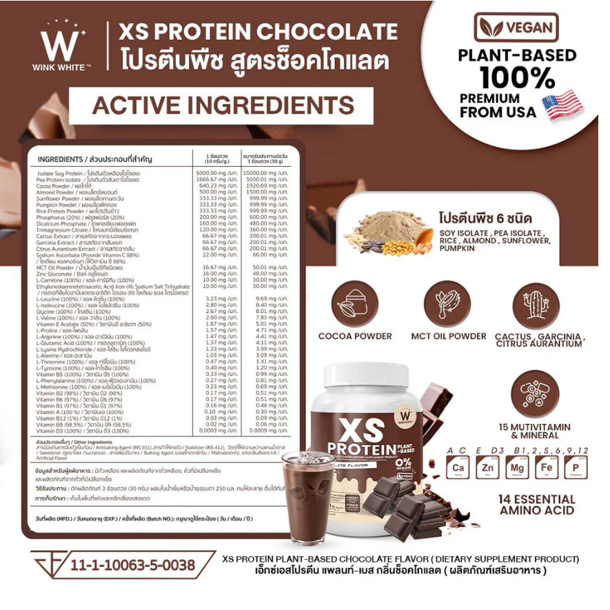 WinkWhite - XS Protein Plant-Based Chocolate Flavor 240g.