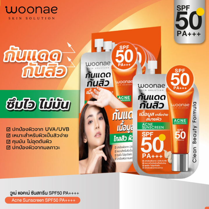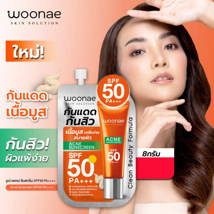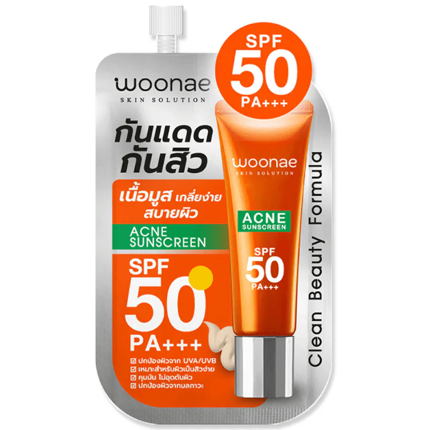 Woonae - Acne Sunscreen SPF50 PA+++ 8g. (Pack of 3)