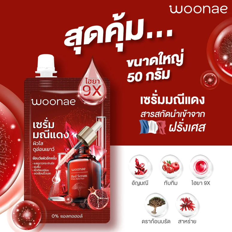 Woonae - Manee Dang White&Baby Face Serum 50g. (Pack of 3)